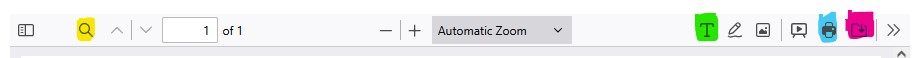 Search: Click on the spyglass highlighted in yellow to search for key terms within the document. Each pdf will have its own search box.